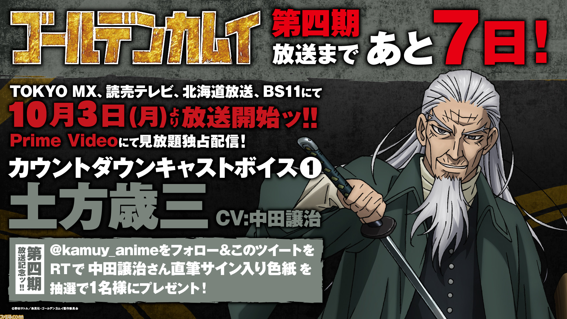 Tvアニメ ゴールデンカムイ 第四期放送間近ッ 豪華キャストによるカウントダウンキャストボイスがhpで公開 本日 9 26 は中田譲治さんと大塚芳忠さんが登場 ゲーム エンタメ最新情報のファミ通 Com
